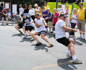 Tautrekkingskonkurransen var populær. Dette blandede laget med navnet ”Hummer og kanari” måtte gi tapt i finalen for Riska Håndball.
